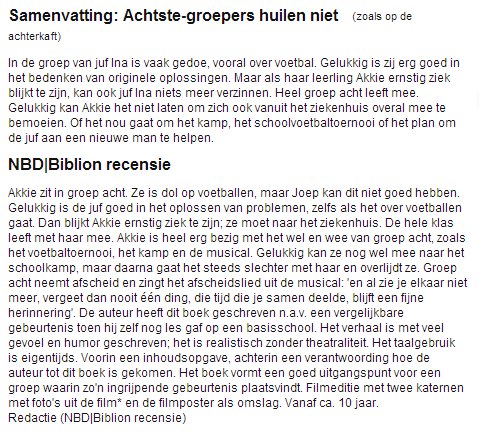 Dit kan voor de korte leesbeleving en zeker van een niet uitgelezen boek een uitstekende vervanger zijn.